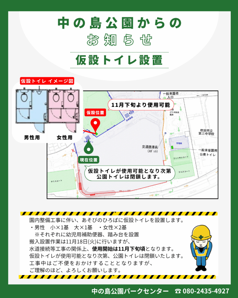 いつもすいた中の島公園をご利用いただき、ありがとうございます。